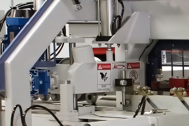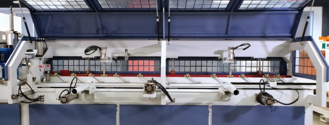 ![]() | Ограждение пилы и прижим плети Ограждение пилы в зоне торцовки обеспечивает безопасность работы и выполняет функцию прижима набранной плети в процессе торцовки. Перемещение осуществляется с помощью пневмоцилиндра. |