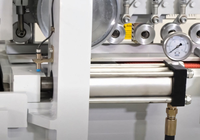 ![]() | Боковая опускаемая планка При выталкивании готовой плети из зоны прессования, боковая базирующая планка автоматически опускается при помощи 2 пневматических цилиндров. |