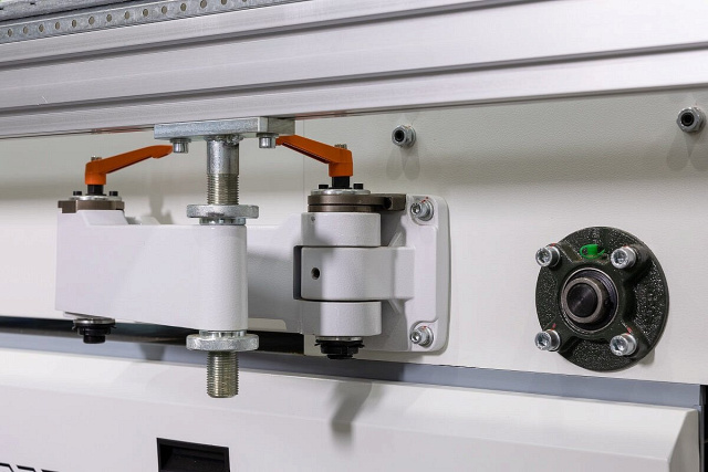![]() | Прижимная балка Алюминиевая прижимная балка изготовлена из усиленного многокамерного профиля высокой жесткости. Высота прижимной балки настраивается автоматически электроприводом в зависимости от толщины детали. Толщина задается с пульта управления. |