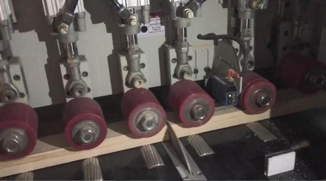 ![]() | Приводные и прижимные ролики Увеличенное количество на станке приводных нижних рифленых роликов в столе - 6 штук и обрезиненных верхних роликов с пневматическим прижимом - 6 штук. Обеспечивают стабильную подачу и точное позиционирование заготовки для резания во время остановки. |