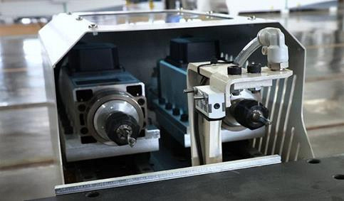 Присадка и выборка пазов выполняются с помощью двух основных шпинделей мощностью 2,2 кВт, 18 000 об/мин.
