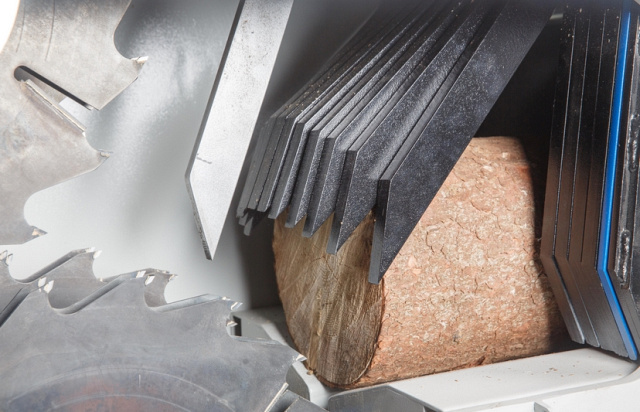 Мощные расклинивающие ножи на выходе из станка препятствуют зажиму пил в процессе работы, существенно продлевая ресурс инструмента.