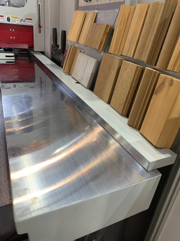![]() | Хромированный стол Подающий и рабочий столы прошли специальную термическую обработку для достижения максимальной прочности и покрыты толстым слоем твердого хрома (0.3 мм) для достижения повышенной износоустойчивости. Полированная поверхность стола уменьшает трение заготовки о стол и снижает усилие на привод подачи. |