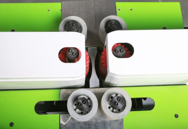 EcoWood MD-2P-A  Подающие ролики  Станок имеет четыре независимых подающих ролика, два на входе, и два на выходе  Каждый ролик оснащен отдельным двигателем  Скорость подачи синхронизирована, плавно регулируются с помощью инвертора  Такая конструкц...Подающие ролики