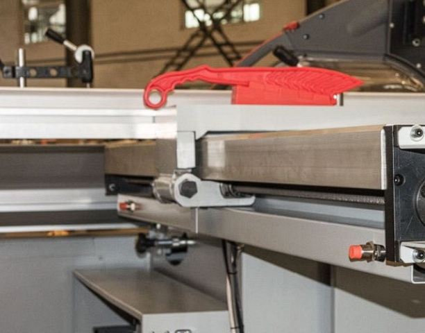 Для высокой точности выставления размеров поперечная линейка оснащена блокам цифровой индикации, позволяющие сократить количества брака при раскрое плитных материалов.