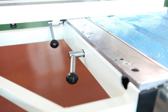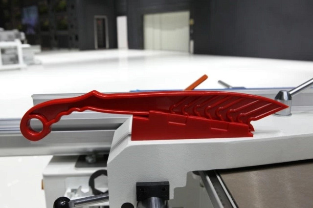![]() | Жестко фиксированная поперечная линейка Поперечная линейка станка жестко фиксируется к поддерживающему столу в двух точках под углом 90 градусов к линии пропила. Настраивается единожды и не требует дополнительных регулировок. Это исключает смещение линейки во время работы и гарантирует правильную геометрию раскроя. Поперечная линейка оснащена двумя массивными перекидными флажками. В базовой комплектации один из флажков имеет электронный цифровой дисплей указания размера. Для угловых резов в комплектацию входит дополнительный угловой упор. |