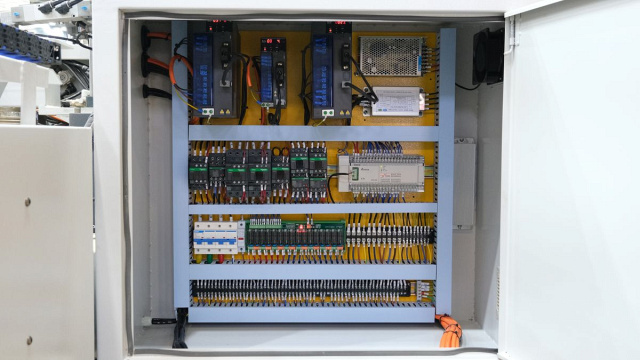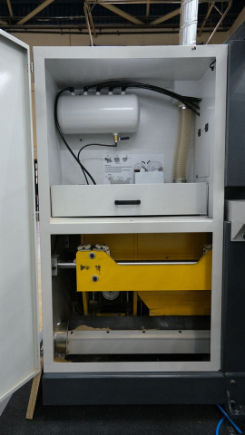 Электро-компоненты от проверенных производителей собраны в отдельном пылезащищенном электро-шкафу с принудительным вентилированием, что значительно продлевает срок службы станка на всем сроке эксплуатации.