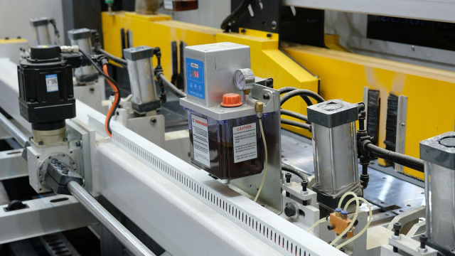 В станке предусмотрена автоматическая смазка направляющих на подъем и опускание пилы, это продлевает срок службы и облегчает обслуживание станка оператору.