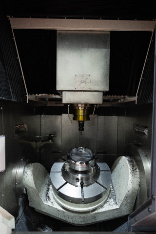 Максимальная скорость 50 об/мин, диапазон вращения оси A составляет ± 120 °, вращение оси C составляет 360°, точность позиционирования по оси A составляет 10 сек, повторяемость 6 сек.