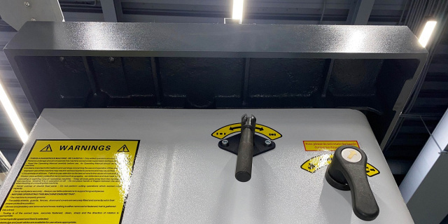 ![]() | Фиксация шпинделя На боковой панели станка расположены рукоятки блокировки шпинделя. Правая рукоятка для стопора шпинделя при смене инструмента. Левая рукоятка для фиксации шпинделя после подъема/опускания. |