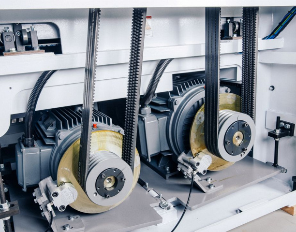 ![]() | Отдельный привод шлифовальных узлов Каждый шлифовальный узел имеет привод от отдельного двигателя, что гарантирует стабильную работу станка при тяжелых нагрузках. Надежный привод каждого узла через 4 зубчатых ремня гарантирует стабильную передачу крутящего момента. Остановка вращения шлиф лент осуществляется с помощью надежных тормозных колодок |
