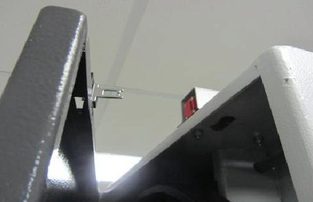 Кондуктор с подшипниками расположен над и под рабочим столом. Удобная регулировка хода подшипников позволит надежно зафиксировать пильное полотно.