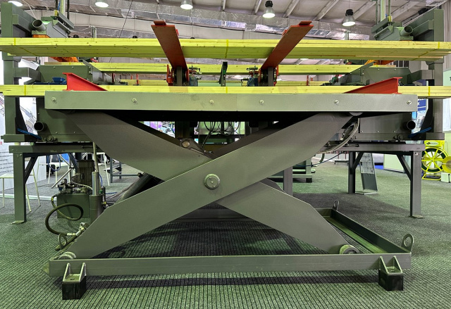 Мощный стол для складирования штабеля с автоматическим опусканием в процессе работы.