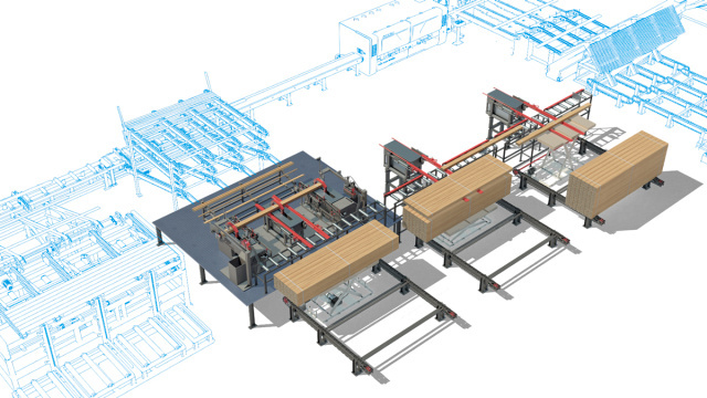 Линия обвязки и чистовой торцовки погонажных изделий (таруки) с автоматической укладкой Линия обвязки и чистовой торцовки