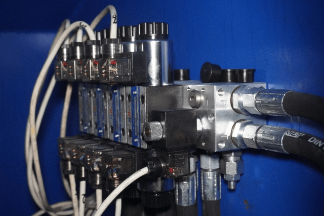 Единая гидравлическая система на три пары зажима бревна, на перемещение пилы, на сброс бревна. Работает быстро, пропил c одного раза. Способна работать на морозе (масло в систему заливать морозостойкое).