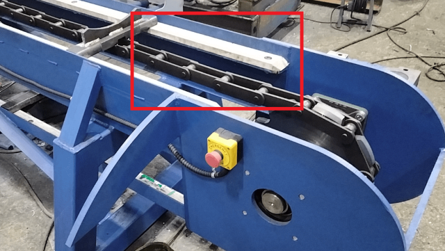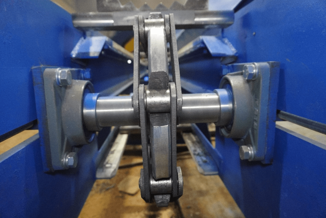 Пластинчатая тяговая цепь специально подобранная для работы в круглосуточном режиме исключает вытягивание в процессе эксплуатации.