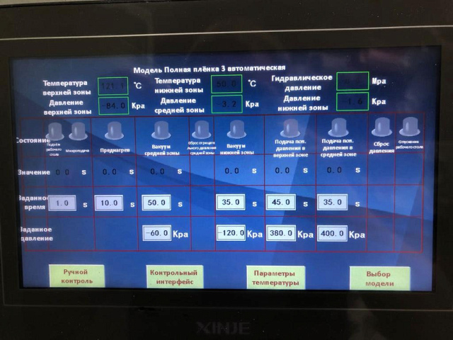 ![]() | Система управления Управление режимами работы пресса осуществляется PLC-контроллером OMRON с сенсорным дисплеем. Благодаря этому процесс прессования происходит в автоматическом режиме, а основные параметры для различных пленок сохраняются в памяти контроллера. |