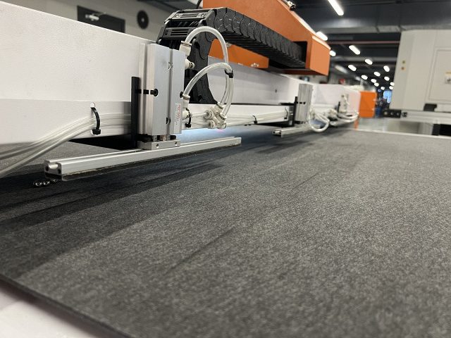 ![]() | Автоматическая загрузка материала Подача материала осуществляется в автоматическом режиме за счет прижима материала к столу балкой, оснащенной пневматическими цилиндрами и перемещением войлочного полотна по принципу конвейера. Материал в виде рулона может быть размещен на стойке для свободной размотки. |