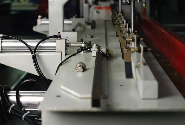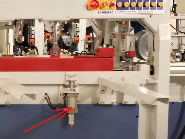 При выталкивании готовой плети из зоны прессования, боковая базирующая планка автоматически опускается при помощи 2 пневматических цилиндров.