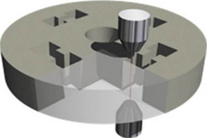 • На первом проходе электроэрозионного реза станок производит непосредственный рез с припуском на дальнейшую чистовую обработку (последующие проходы) для получения меньшей шероховатости поверхности. В случае реза детали типа пуансон оставляют перемычку, не завершая рез до конца прохода, чтобы пуансон не выпал.