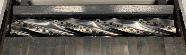 ![]() | Спиральный ножевой вал Ножевые пластины расположены по спирали. Это обеспечивает плавный вход ножей в заготовку и исключает ее подрывы, что повышает качество обработанной поверхности. Вал имеет 6 спиралей твердосплавных пластин. |