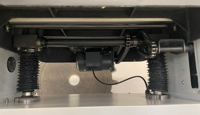 ![]() | Рабочий стол Рабочий стол – чугунный литой. Зафиксирован на 2-х опорах. От попадания пыли и грязи опоры закрыты кожухами. Перемещение стола по высоте осуществляется от отдельного двигателя, расположенного под столом посредством цепи. |