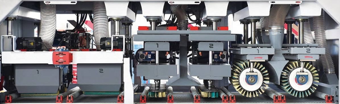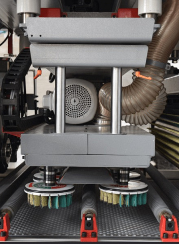![]() | Узел продольного шлифования (R) Третий шлифовальный блок с двумя валами большого диаметра, управляемые отдельными двигателями. Функция поворота узловдо 4 градусовдает возможность сместить угол атаки при шлифовании тем самым создавая более деликатную шероховатость поверхности на обрабатываемой детали. Узел продольного шлифования (R) оснащен шлифовальным инструментомFlex Trim (Дания), в комплекте 30 шт. x 2 вала (общее количество - 60 шт.). |