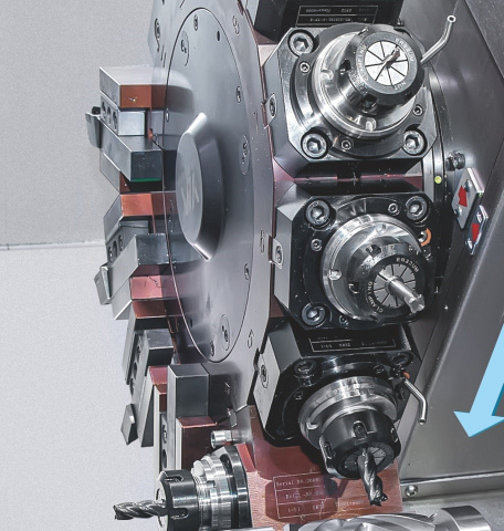 ![]() | Противошпиндель Второй шпиндель (противошпиндель) C2 предназначен для перехвата заготовки и завершения обработки тыльной части поверхности детали. Максимальные обороты противошпинделя – 5000 об/мин. Диаметр патрона 6" дюймов. |