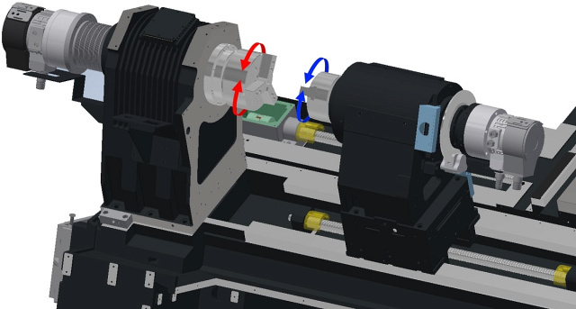 Y  Синхронизация осей C1 и C2 для станков с противошпинделем  Обеспечивает максимальную гибкость обработки для разных типов заготовок  От простой обработки до многоосевой одновременной обработки - все операции могут быть выполнены за одну установку Синхронизация осей C1 и C2 для станков с противошпинделем