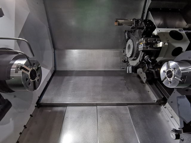 Противошпиндель с полным управлением по оси C позволяет обрабатывать заготовку за один установ, а мощный встроенный двигатель Fanuc (Япония) обеспечивает быстрое ускорение с высоким крутящим моментом и высокой точностью.