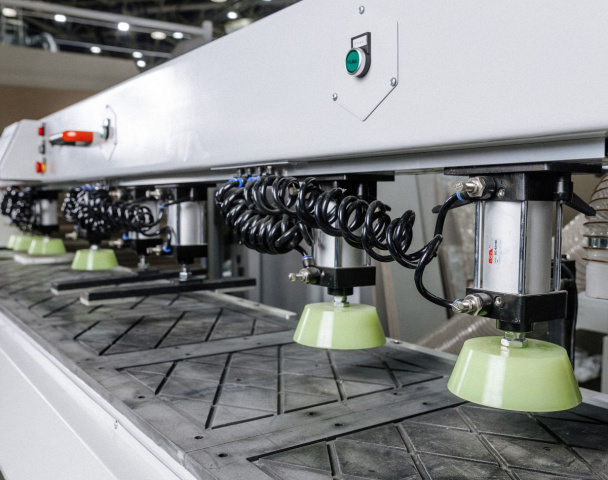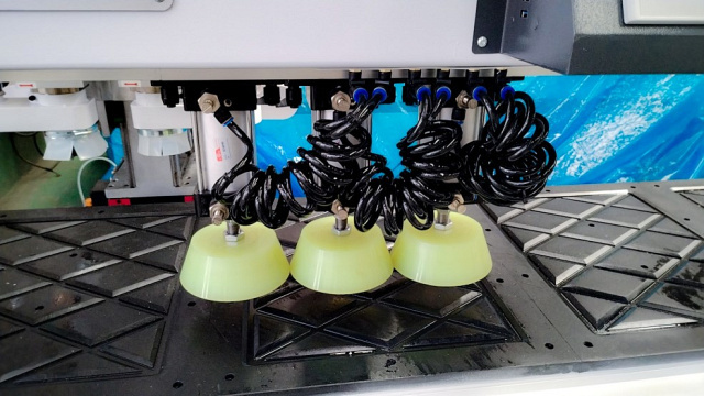 ![]() | Рабочий стол и верхние прижимные устройства в рабочей зоне Стол выполнен из плотного износостойкого композитного материала, обеспечивает долгий срок службы. Прижимы плотно прижимают заготовку к рабочему столу. Максимальная толщина панели до 45 мм. На станке возможно использование до трёх рабочих зон, это позволяет вести непрерывную обработку и работать в маятниковом режиме. |