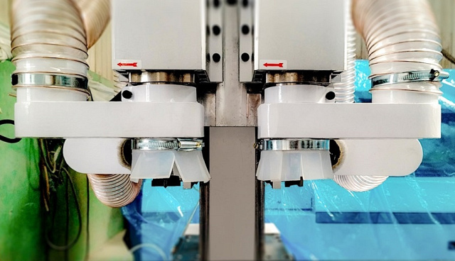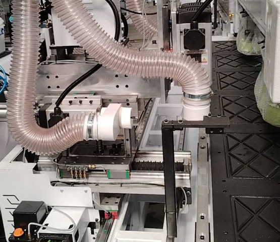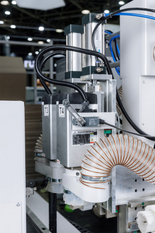 ![]() | Обработка деталей в торец Присадка и выборка пазов выполняется с помощью двух шпинделей мощностью 2,2 кВт (18 000 об. мин). Применяется на мебельных производствах, где применяется технология NESTING. |