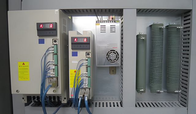 В станке используется надежная и оптимизированная электрическая система. Электрические компоненты в основном размещены в электрическом шкафу. Для облегчения работы, на панели управления размещены кнопки управления.