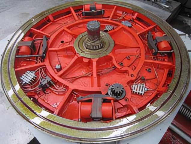 Установлен серводвигатель переменного тока большей мощности и 4-ступенчатый редуктор. Для приведения в действие коробки скоростей и зацепления шестерен на разных ступенях переключения используются гидравлические цилиндры. Другой серводвигатель переменного тока установлен на станине для подачи осей. Регулировка скорости каждой ступени достигается с помощью двигателя шпинделя и блока сервопривода