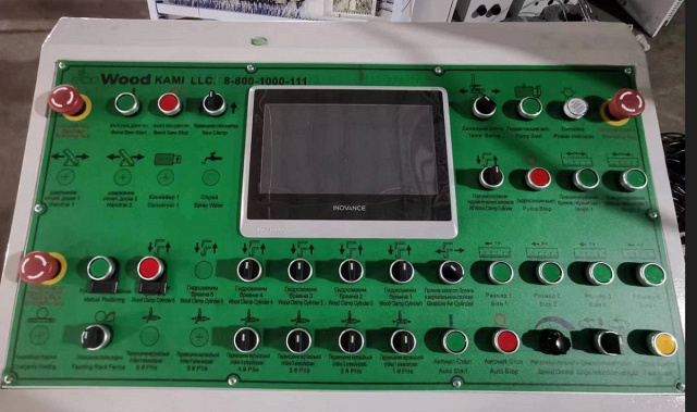 Единый выносной пульт управления для управления станком, кареткой, системой загрузки и приемным рольгангом. Пульт оснащен джойстиками, PLC контроллером с возможностью программирования для автоматического распила. Полностью русифицирован.