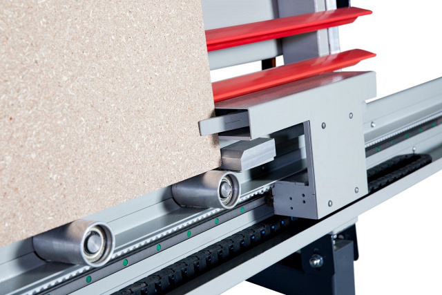 ![]() | Защита от повреждения направляющих Опорные силиконовые планки имеют возможность автоматически перемещаться в вертикальной плоскости для предотвращения их пропила при попадании в зону резания при горизонтальном раскрое. |
