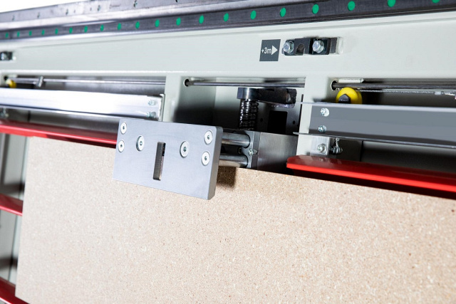 ![]() | Боковой позиционирующий упор Предназначен для автоматического позиционирования листа материала при выполнении вертикальных резов. Точность выставления размеров обеспечивается ЧПУ станка посредством сервомотора. |